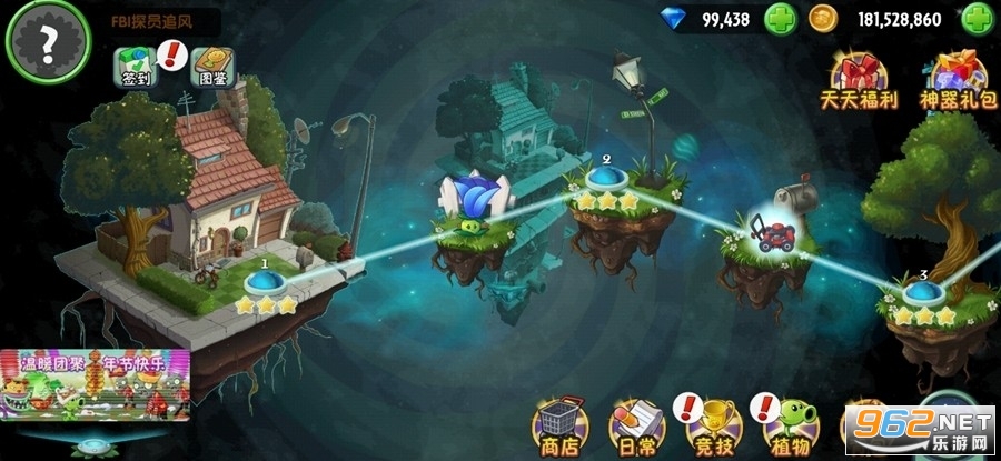 1、七周年庆典终于开启啦,每个玩家都可以寻找潘妮的秘宝,获得稀有植物奖励。