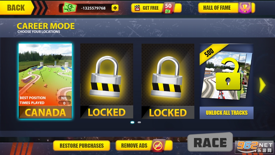 可以在没有钞票的时候直接购买赛车,购买完获得大量钞票。