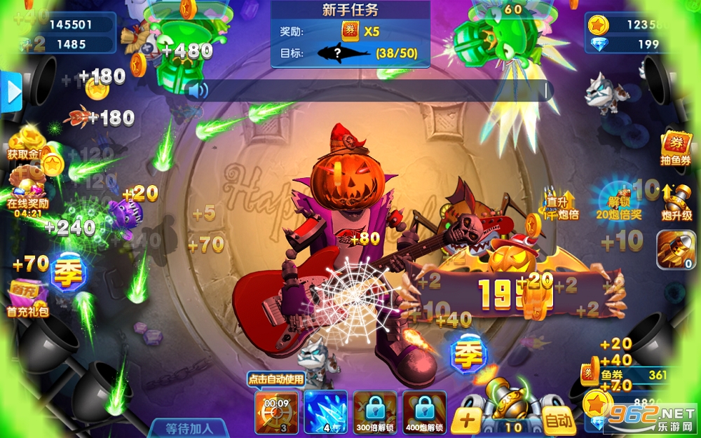 5、定期升级炮台,提高收益,增加攻击力。BOSS肯定要高级炮台才容易击杀,所以升级炮台是很有必要的,BOSS从渔场边缘探出头时,是最好的捕获时机。