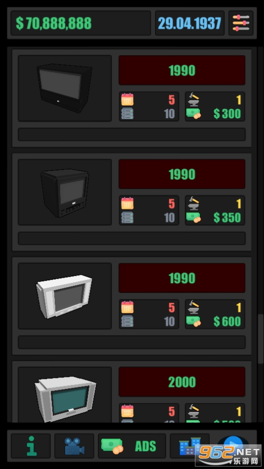 以电视为核心的休闲游戏,画面比较简单,为玩家呈现了各种不同年代的电视,想办法把这些电视售卖出去提升你的业绩就可以了,快来下载吧!