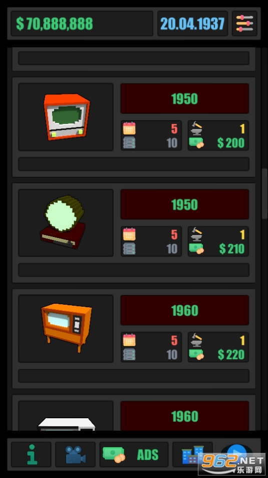 成为电视大亨游戏中的电视大亨。购买生产线并推出新电视。 1930年至2026年展示了30部电视。