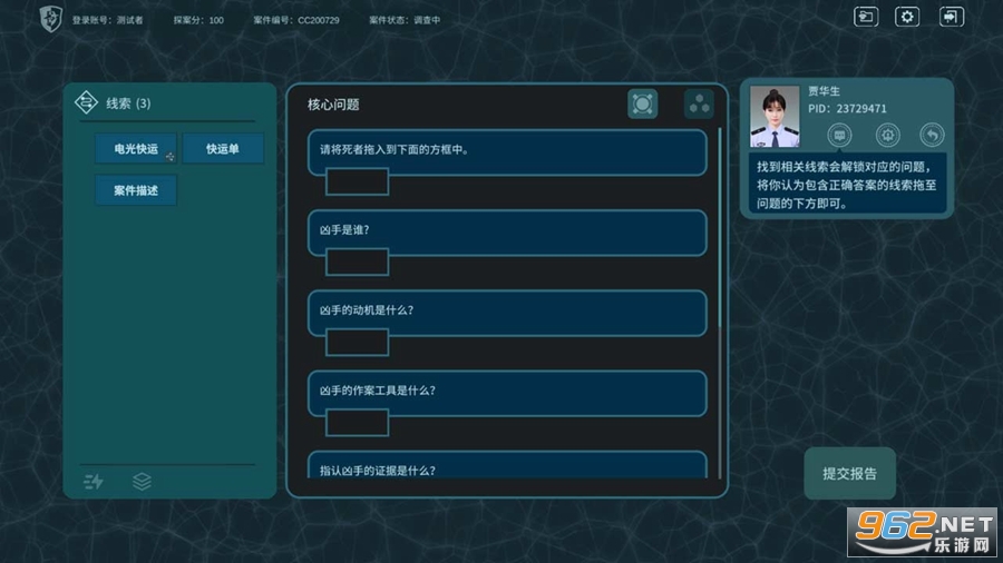 作为测试者的你需要在系统的规则下完成案件的破解,案件的破解过程与真实的警方破案非常相似,需要你抽丝剥茧不能错过任何的细节。