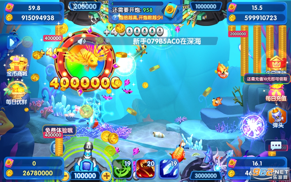各种爆机金币送不停,奖励鱼、一网打尽, 金币,道具,在线奖励疯狂送不停!