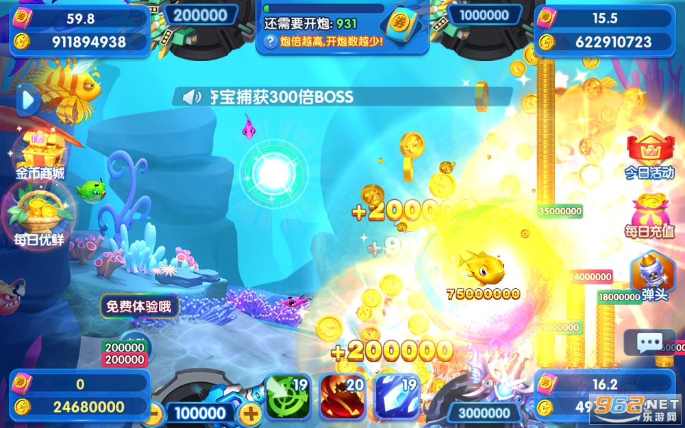 还原经典街机捕鱼,BOSS满屏,金币无限送!