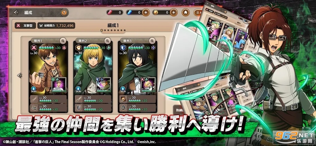 单行本世界累计发行册数突破1亿部的人气作品『进击的巨人』的智能手机游戏最新作登场!