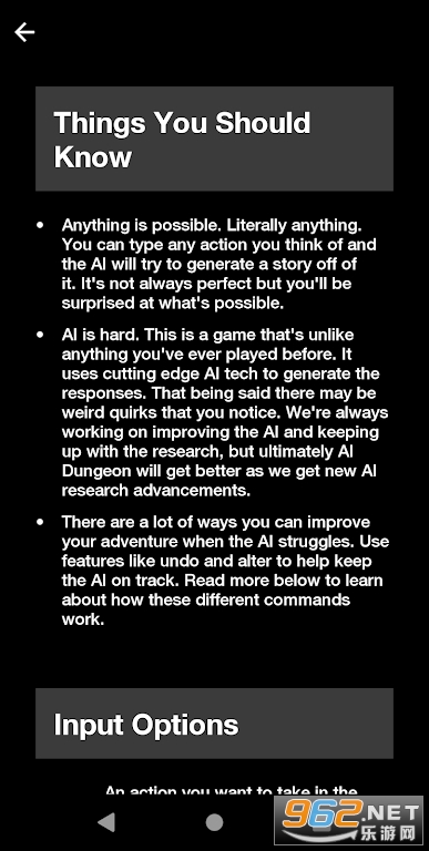 《AI Dungeon》一款基于AI的文字角色扮演游戏,在这款游戏中你可以设定自己的世界,你可以自由的选择角色的一言一行,在这里AI会为你搭建属于你的独特世界,还可以进入不同的流派冒险,快来试试吧!