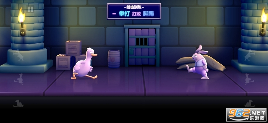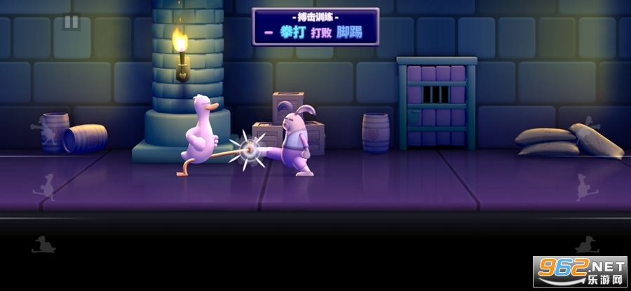 《Punch Kick Duck》是一款画面清新卡通的魔性休闲战斗竞技手游,游戏中玩家将控制一只鸭子去冒险,鸭子会自动行走,玩家需要做的就是出拳踢脚和下踢,去击败出现的各种动物,注意出拳可以打败踢脚的动物,踢脚可以打败下踢的动物,下踢可以打败出拳的动物。