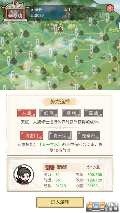 招募不同的弟子去修行,组成一个团队出去冒险,完成一系列的任务,获得各种资源,建立教派。