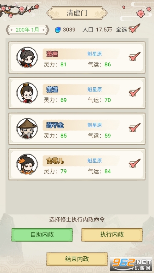 2、修士产出方式:内政时选择巡查、俘获其他门派的修士;