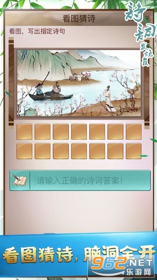 1、看图猜诗,游戏会给出一张图片玩家看图猜出正确的诗名。