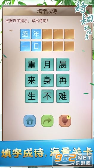 3、填字成诗,游戏给出随机的文字玩家需要把文字填在缺少的诗句后面。