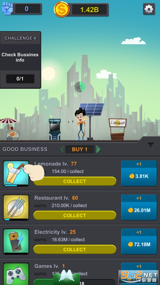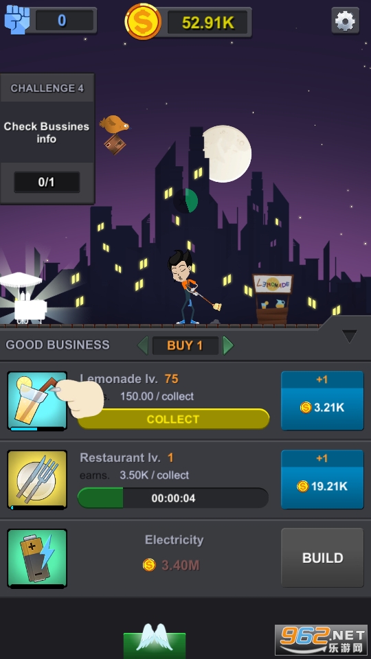 准备好你自己的闲荡冒险成为一个亿万富翁资本家在闲荡光照派的领域!增量空闲游戏,你从清理街道和投资你的辛苦赚的钱到柠檬水摊,以构建新世界秩序结束。但首先,想办法把你的柠檬水摊位升级为生产柠檬水的大型闲置工厂。开始从你的生意中增加收入,在你的职业生涯中进步,通过招聘经理致富。在你的资本主义成功后,你会给光明会的领主留下深刻的印象,他们喜欢富有的巨头。