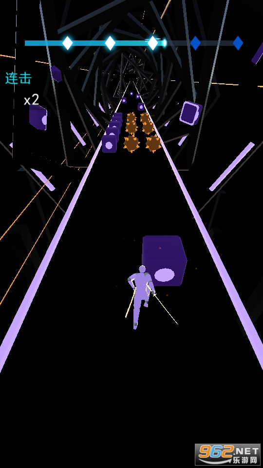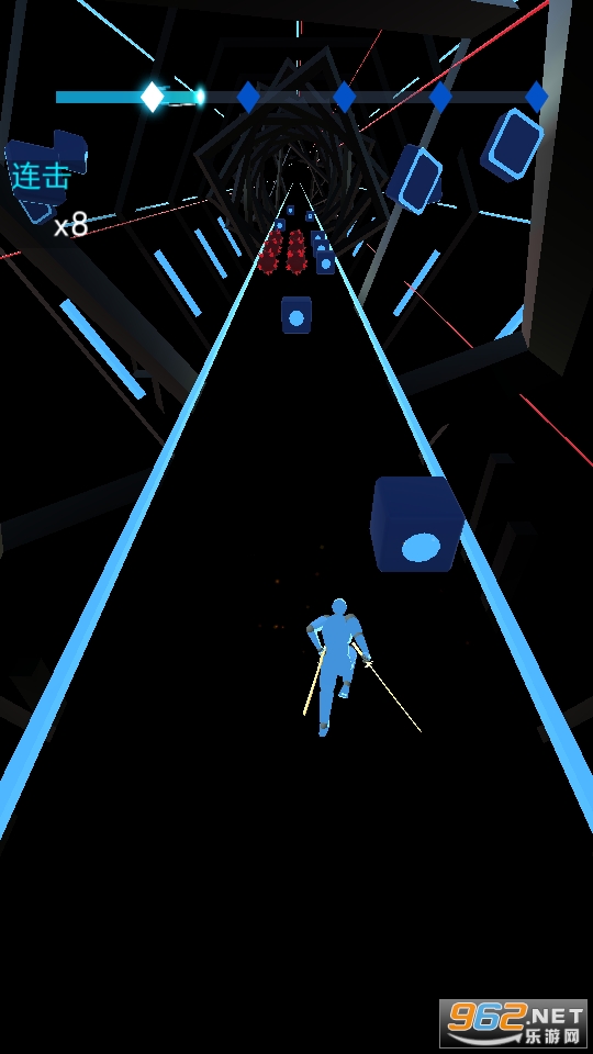 跟着酷炫刺激的切割特效,非凡的打击感和音效,挥舞你手中的光剑劈开飞驰而来的方块吧! (ps.记得躲开路上的障碍喔~)