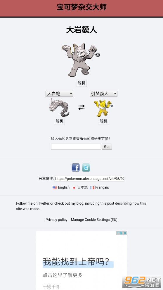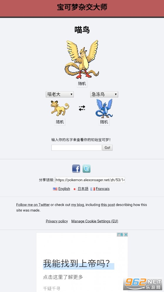 宝可梦杂交大师安卓版是一款能够把不同的宝可梦放在一起的软件,这款软件十分的有趣,喜欢宝可梦的玩家可以试一试,但是也不必当真,纯纯的趣味罢了,还有着此软件内会有广告,大家如果不喜欢广告的可以略过!
