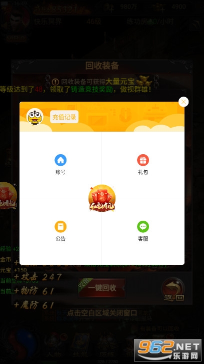 2、上线就送稀有装备,限制装备可自由交易,任性回收。