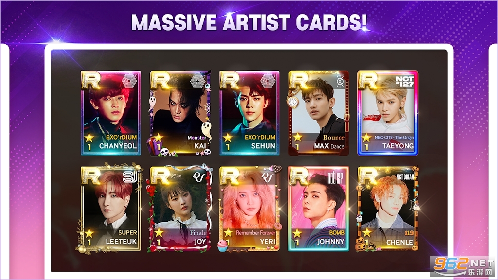 你是SM家族的忠实粉丝吗?你喜欢听SM家族的各大天团的歌曲吗?本款游戏汇聚了SM家族旗下所有艺人的歌曲:少女时代、东方神起、fx等顶尖天团你都能在游戏中找到!还可以通过创光来收集SM家族艺人的卡片哦!喜欢SM家族的小伙伴们千万不要错过呦!