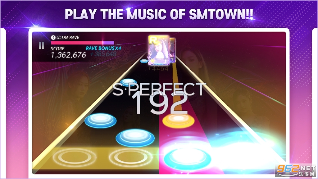 这是一款玩起来非常有趣的音乐节奏类的游戏,游戏以及韩国的明星组合sm作为题材制作,同时赋予了每一位团队成员在游戏中的不同能力值,能力会影响技能特性,喜欢的亲们赶紧下载吧。