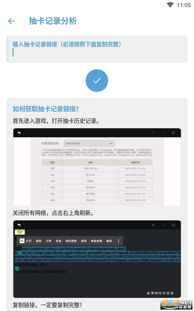 《应急食品抽卡记录分析》是一款非常不错的原神的抽卡记录的导出工具,适用于手机的版本,操作方式简单体积小巧,导出非常的安全,而且使用起来的感觉也还是很不错的哦,感兴趣的亲们赶紧下载吧。