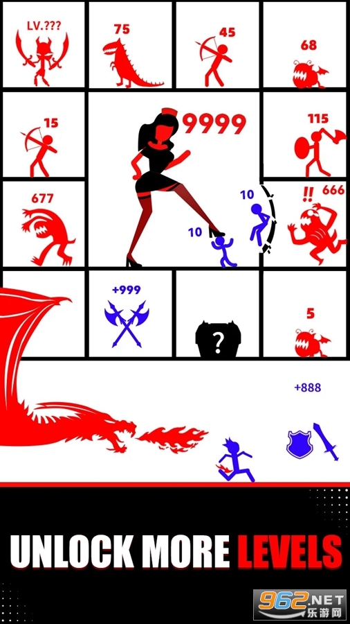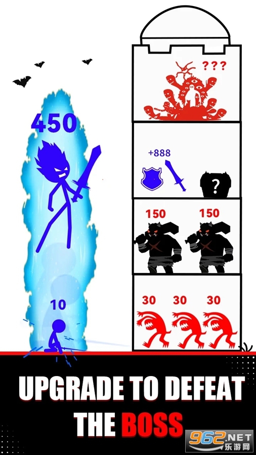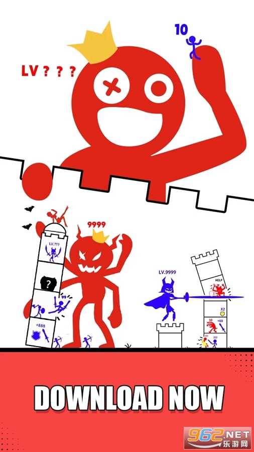 《英雄冲突小游戏(Hero Clash)》是一款放置类策略战斗手游,游戏中玩家将控制一个简单的线条火柴人英雄去冒险,有着多种不同的阵营可以选择,可以前往一个个关卡去战斗,注意先从战斗力低的敌人开始一点点的往上爬塔,最后消灭强大的boss。