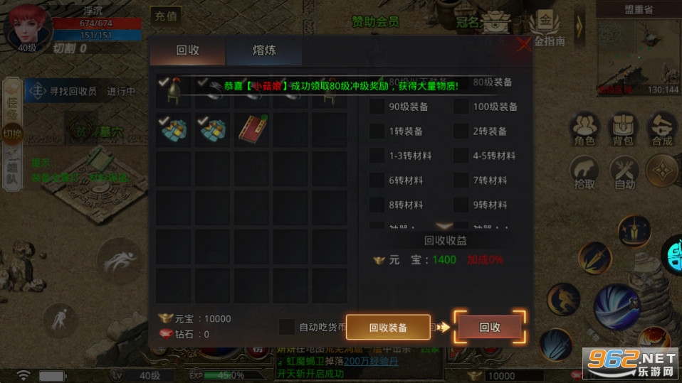 1、特效超炫酷,自由度超高,一键回收装备,秒爆极品,挑战全新区服,获得最新神器。