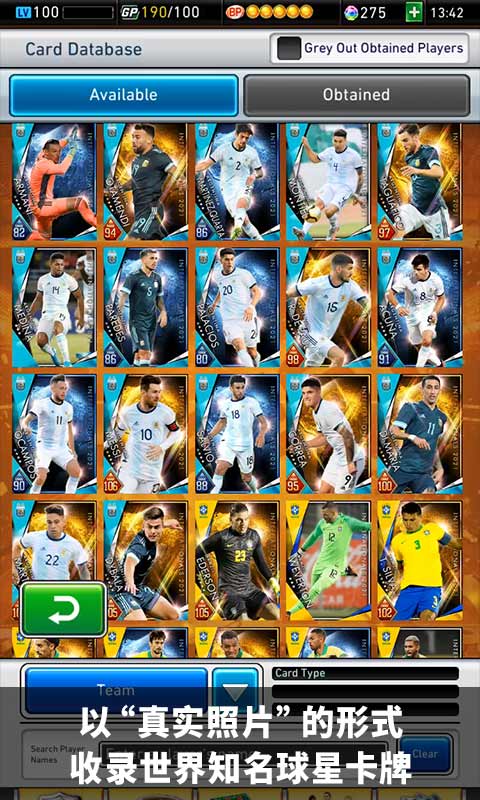 ●以真实球员照片的形式 收集世界知名球星卡牌!