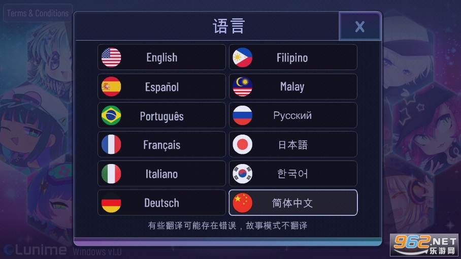 注:在游戏开始界面中点击右下角Language即可切换中文语言。