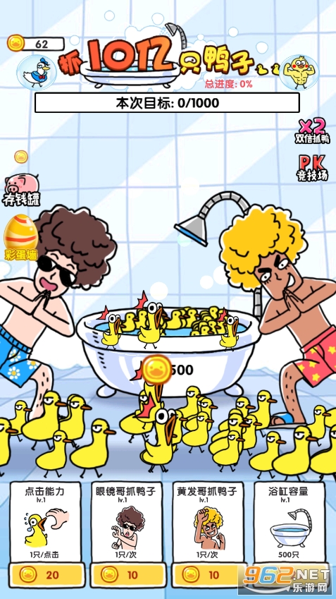 《抓10亿只鸭子金币不减反增》是一款好玩的抓鸭子游戏,玩法非常简单,玩家只需要点击屏幕就可以抓鸭子,不断地抓鸭子赚钱解锁各种各样的道具,升级抓鸭子的速度,浴缸的容量等等,快速抓鸭子,还可以解锁彩蛋,和其他的玩家pk,看谁抓鸭子更腻害,快来下载吧!