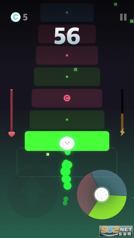 非常能够锻炼玩家反应能力的休闲游戏,左边进行跳跃,右边选择颜色,在规定的时间内完成跳跃就可以了,必须让小球和道路的颜色相匹配,快来下载吧!