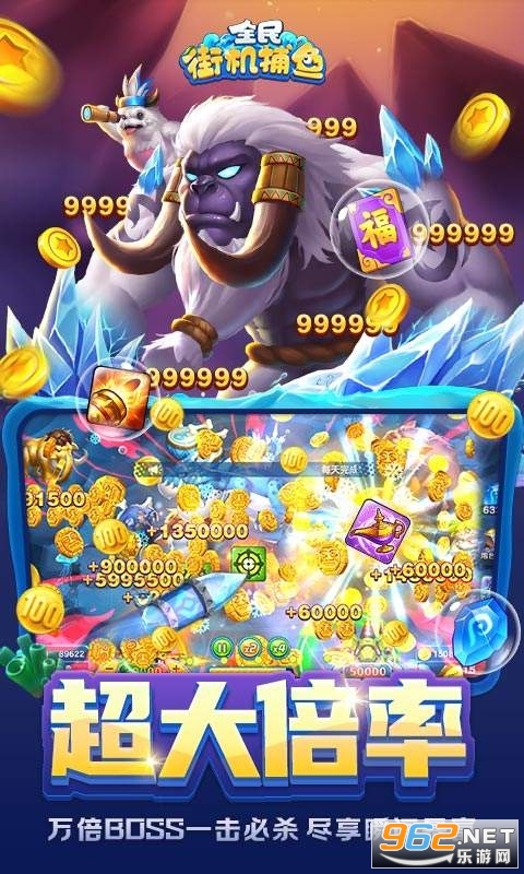 游戏厅经典街机捕鱼风格,100%还原绚丽画面、万倍炮台,爆机变土豪。