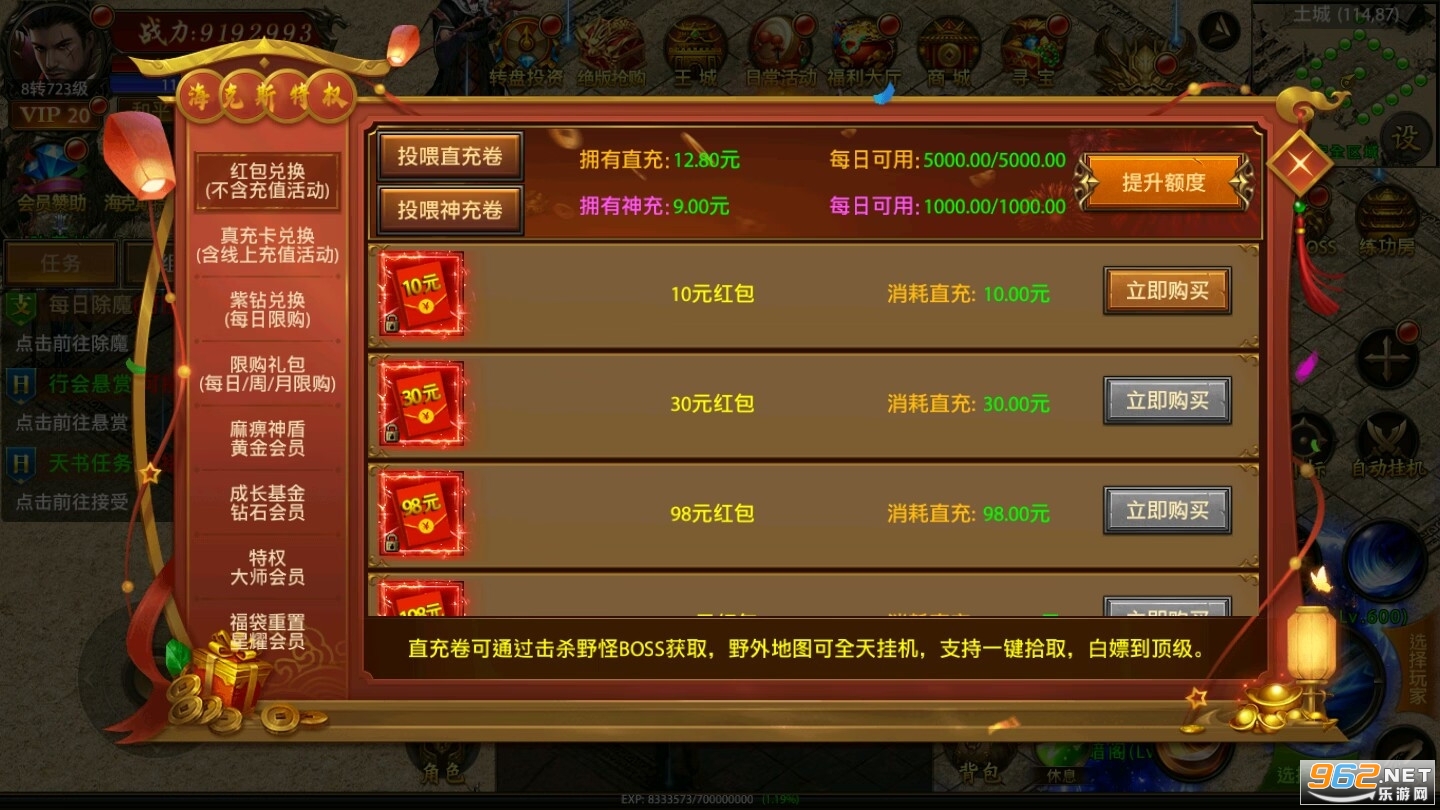 《神谕传奇(海克斯飞升特权)》是一款全新的单职业动作冒险类传奇游戏!主要以升级、爆装备、攻沙、跨服远征为核心,丰富多样的玩法,华丽炫酷的时装特效,高清画质极致视觉盛宴。击杀BOSS可触发超级幸运红包大爆充值卡,免费直升满级VIP,闯关专属地图爆守护神装。还有每日跨服屠魔免费抽神壕套装!超高怪物爆率,元宝神器战装爆满屏,让你轻松刷怪,惊喜不断。怪物攻城、阵营战、沙城争霸、跨服远征、福利转盘、幸运翻牌等线上活动精彩不断。更有冠名专属、定制称号助你叱咤风云,威名远扬!战宠神威,唯吾独尊!热血狂爆,一战封神!