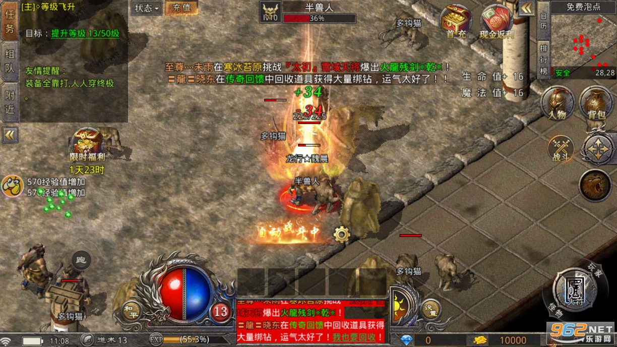 为大家带来贪玩正版国战传奇手游,经典的1.80火龙版本,在这款游戏中玩家将重铸沙城霸业,和兄弟们一起挑战boss,打造神兵,激情pk,击败敌人。pk流畅舒适,让你用操作来击败对手,推荐给喜欢传奇手游的玩家。