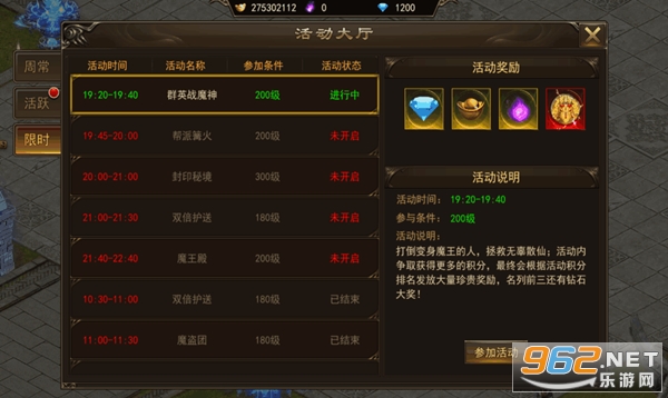 3、百万公会活动,自由加入,更有热血的跨副本竞技战斗,享受万人同屏PK。
