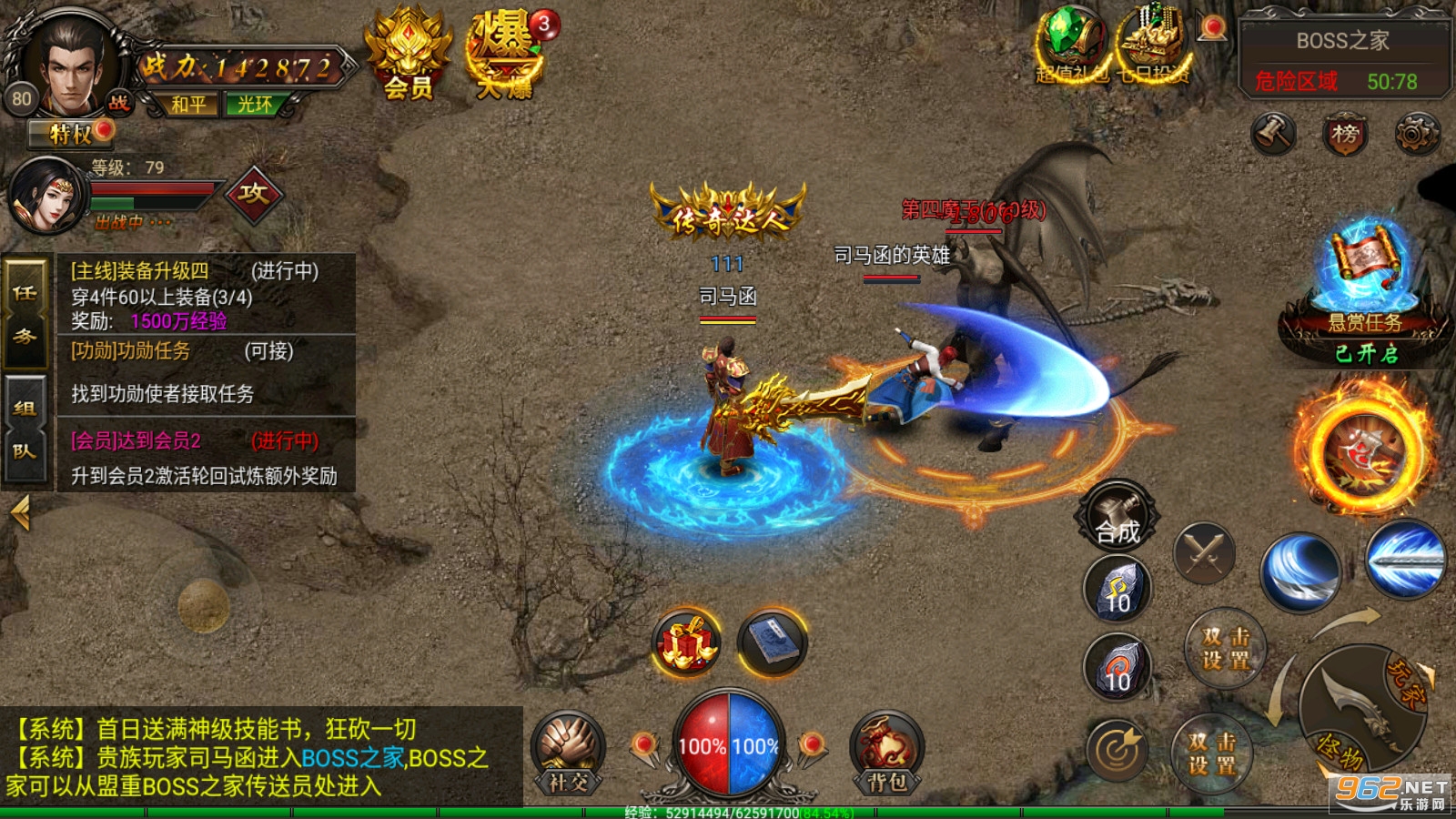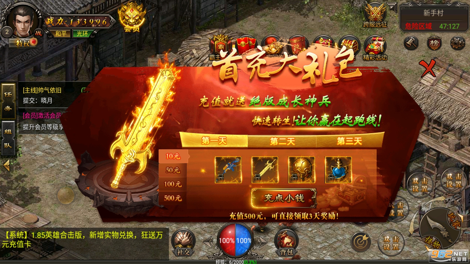 ★1.85怀旧版本,玩家与英雄使用合击技能。登录送魂环。