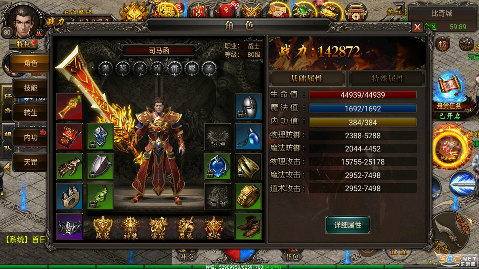《皇城传奇(1.85合击魂环)》是经典85英雄合击手游。游戏复刻经典85英雄合击系统,有战士、法师、道士三大职业。有威名系统、守卫比奇、传世特戒、角色转生、世界BOSS等玩法。