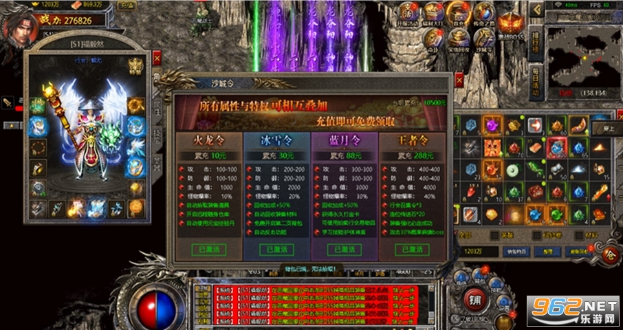 (3)套装,神化装备,可以给装备附加神化属性增加攻防,10个部位均神化后激活套装属性,增加增加大量暴击、暴击值;