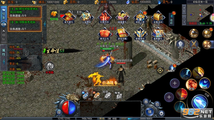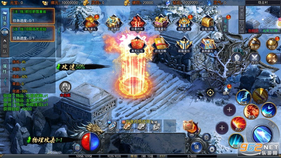 ★【复古冰雪】:上线送VIP10直升卡,送百万钻石、千万元宝!送变态技能全屏吸怪!