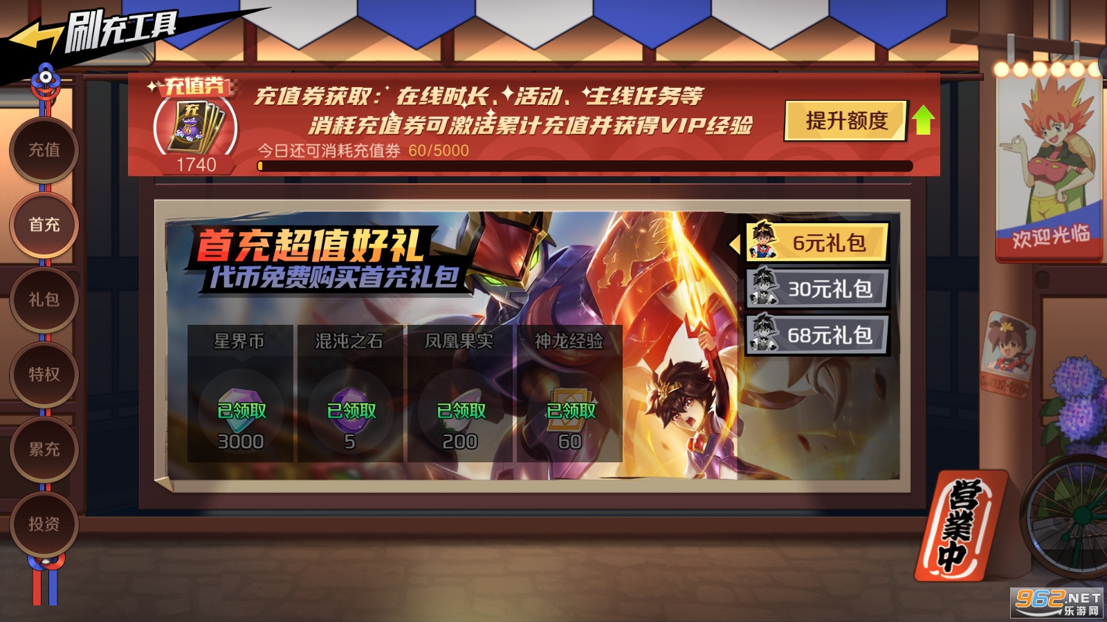 ★刷充工具无限刷充,可激活首充、累充活动。还可购买特权、投资等,获得VIP经验