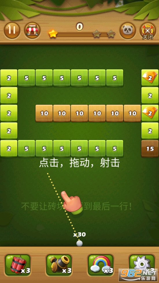 简单轻松的游戏玩法:平稳控制射球,击破砖块