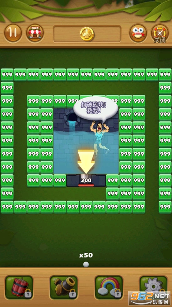 这个男子被困在丛林中面临溺水的危险,要击碎所有砖块以帮助他逃脱。您需要做的就是在这种快节奏的小球打砖块游戏中,尽可能多地打破砖块,以赚取宝石并通过关卡。
