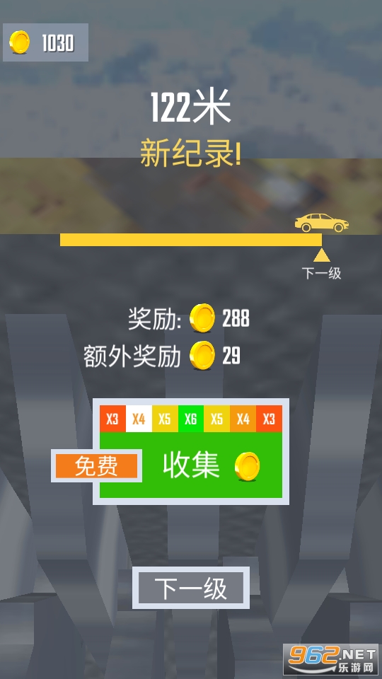 2、玩家需要操控车辆不停的行驶,一旦从高空中坠落就会导致挑战失败;