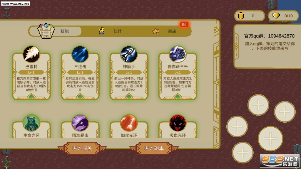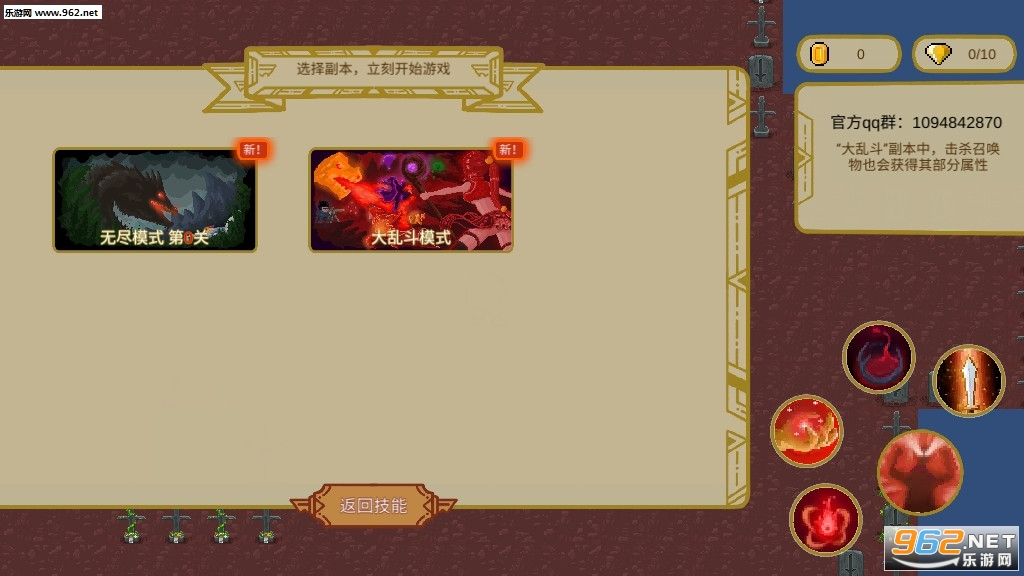 一款非常有趣的像素风格闯关游戏,游戏中有着各种各样不同的场景地图和boss等待你的挑战,你可以选择自己的几个技能来开始挑战,你可以了解技能的效果,将它们组合起来形成一个完整的体系,游戏的操作简单容易上手,推荐给喜欢休闲闯关游戏的玩家。