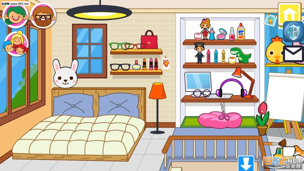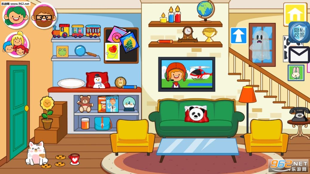 每次打开游戏时都会有一个有趣的数字玩具屋等着你!您可以在自己的房子内的7个房间内进行互动,等待您的冒险时间!