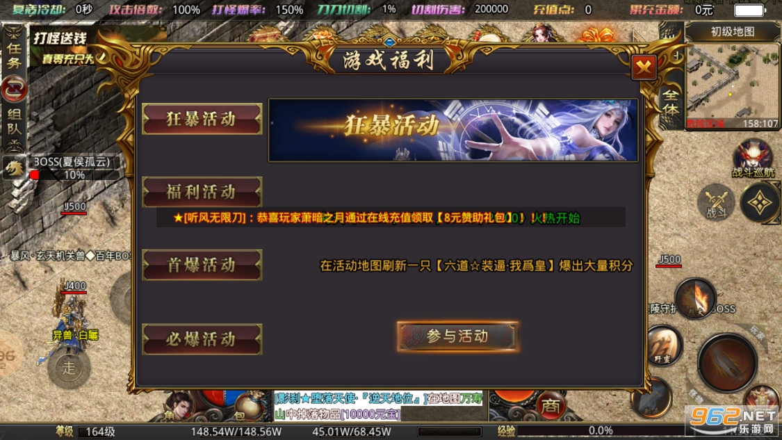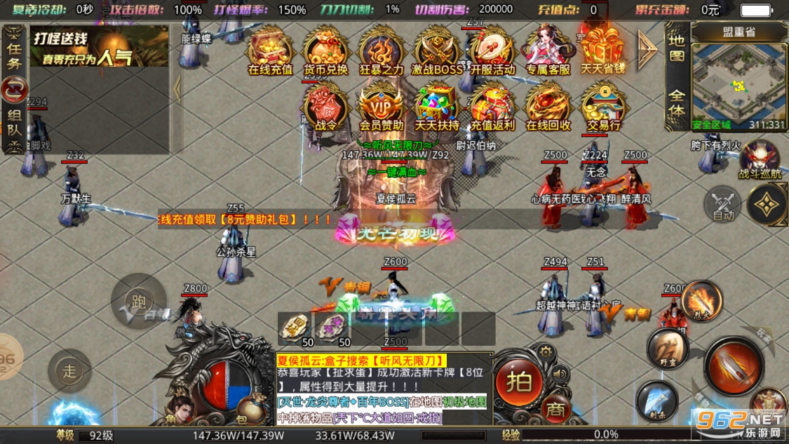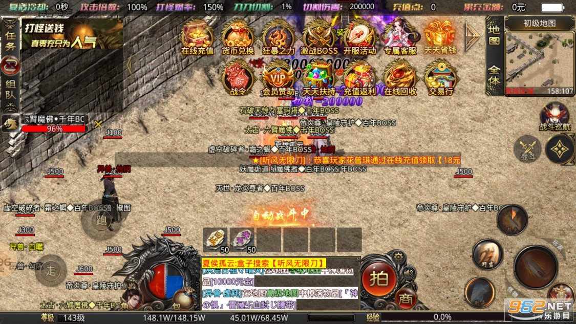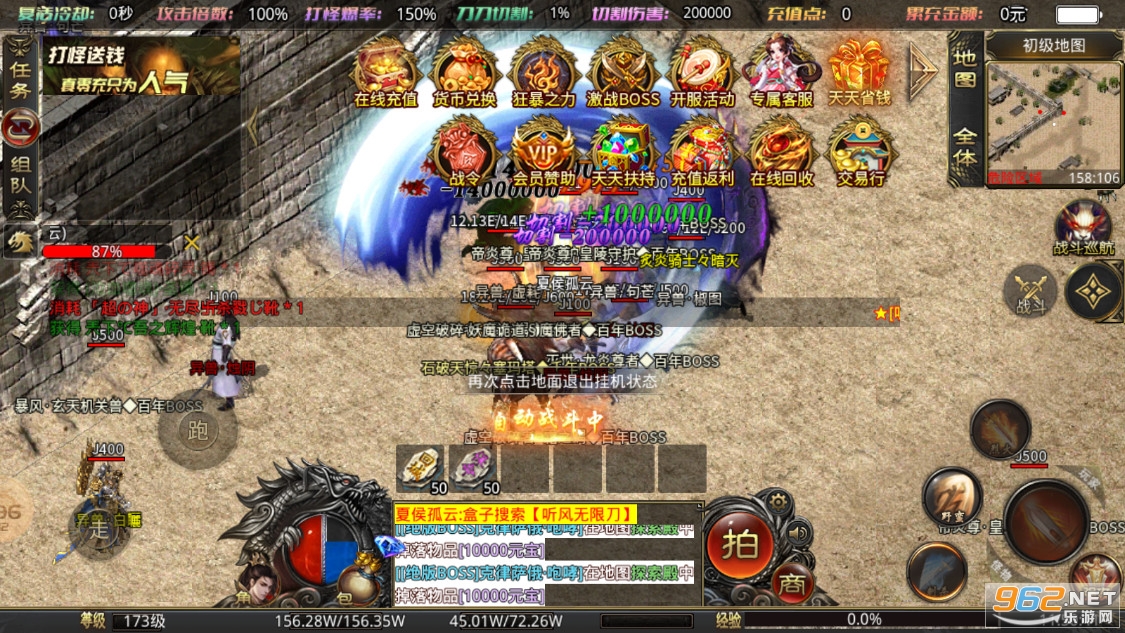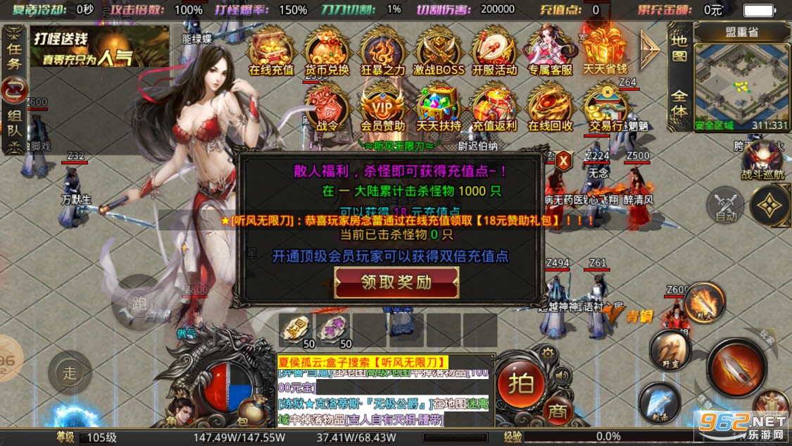 1、全屏拾取、自动回收上线就送、白p可畅玩本服!
