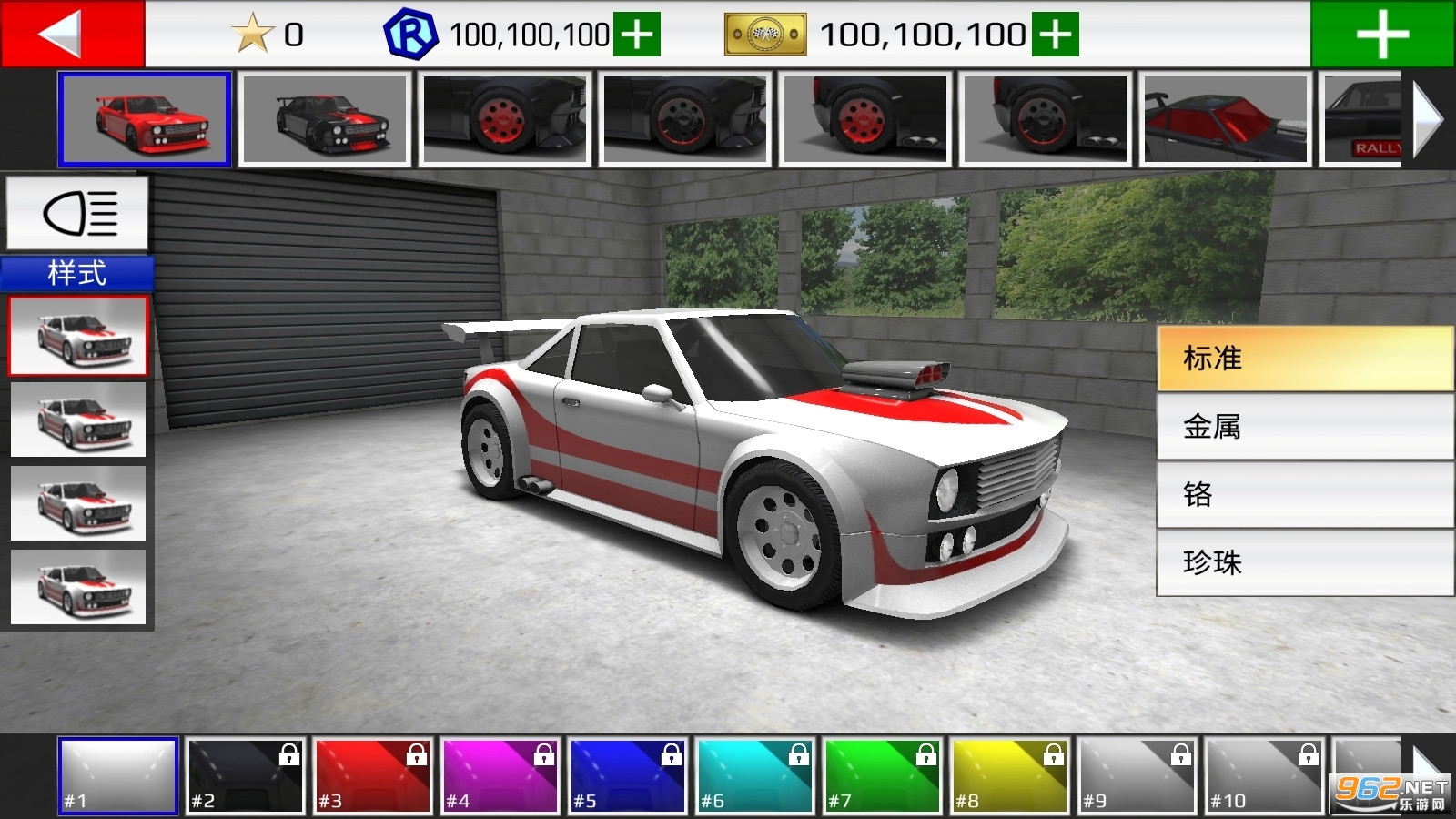 汽车:多种高性能拉力赛车驱动,每个不同规格。