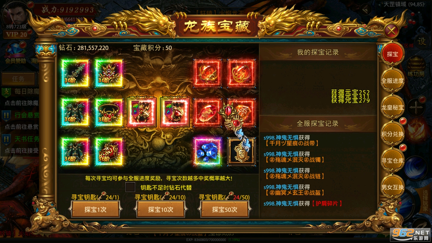 ★赠送128万钻石,888万元宝,10万红钻,称号“不要怂就是干”,探宝钥匙*50
