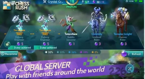 战歌自走棋用魔幻风格,玩家可以从50多个英雄棋子中进行选择,来二二六五安卓网可透过各式各样的战略将英雄们放置在棋盘战场上,与随机配对的7个对手进行战斗;不仅有经典的竞赛模式,也加入了极速对决模式,让玩家可以在10分钟内完成一场战斗。此外还有合作模式,让玩家可以组队战斗;一场英雄的战棋对决,一场谋略的头脑风暴,相信也会给自走棋品类带来新的惊喜