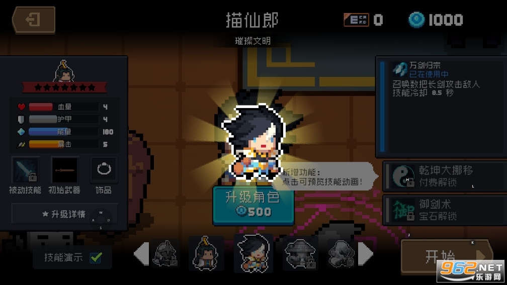 技能1:万剑归宗:召唤12把飞剑攻击敌人