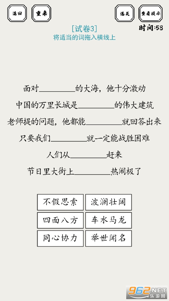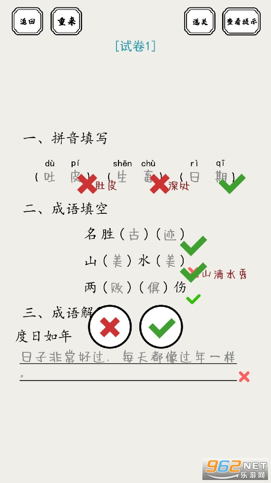 这是一款发动智慧找到作业中错误答案的游戏,游戏中有丰富多样的试卷试题,也有诗词和成语组合试题,游戏轻松有趣使你脑洞大开,快来挑战一下吧