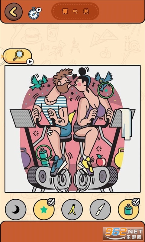 1、找隐藏物件:小符号,小物件会被巧妙地放在整张图片的某个角落,它可能是人物的一个腮红,是墙上砖纹中隐藏的一个小锤子,你得用心观察,才能找到他。