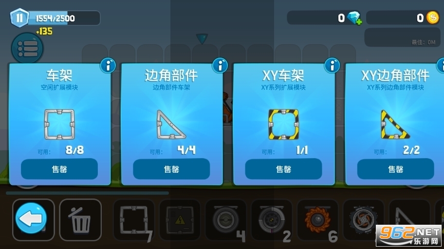 3、利用不同数量零件组建出自己赛车,全面升级发展,提高赛车性能。